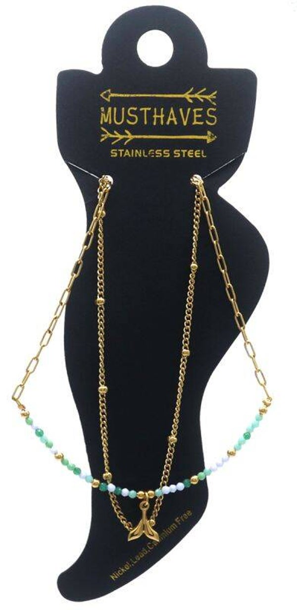Deze roestvrijstalen enkelband is een verfijnde mix van speelsheid en elegantie. De combinatie van glanzende glaskralen en een gouden walvisstaart-bedel geeft een stijlvolle en maritieme uitstraling. Gemaakt van hoog kwaliteit roestvrij staal, is deze enkelband bestand tegen corrosie en blijft hij mooi glanzen, zelfs bij regelmatig dragen. Deze enkelband is ideaal om solo te dragen of te combineren met andere enkelbanden. Perfect voor zomerse avonturen, stranddagen of als cadeau voor een oceaanliefhebber.